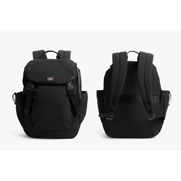 The Cinch Backpack offers padded shoulder straps with tri-glides that adjust for a good fit, a front pocket that disappears behind the flap with a snap and a top handle to keep things portable.