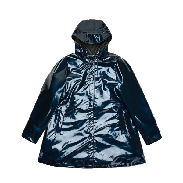 The A-line Jacket is a feminine raincoat made from Rains’ signature waterproof fabric. The a-shaped silhouette gradually builds in volume from the chest to the hem. The jacket features a drawstring hood with Rains’ signature built-in cap, paspel pockets and snap-button cuffs. The jacket is completed with hidden snap buttons and a front placket.